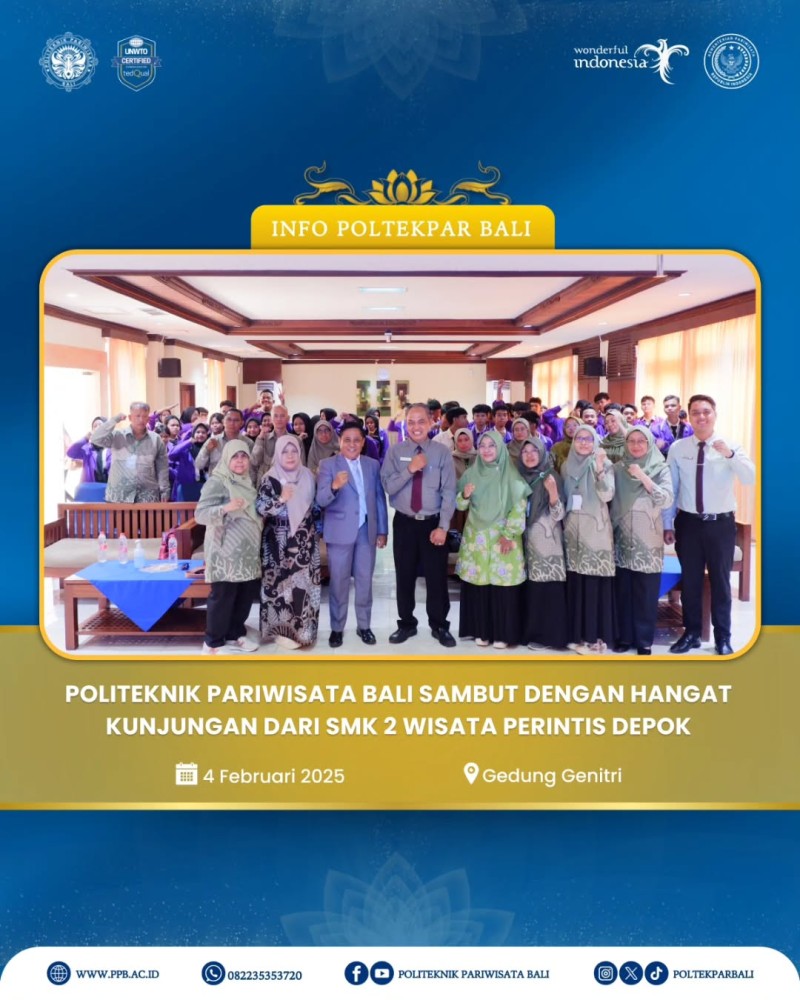 Poltekpar Bali received a study visit from SMK 2 Wisata Perintis Depok on Tuesday, February 5, 2025.